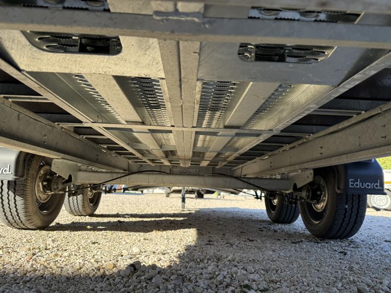 - Rendkívül erős, stabil, jó húzású, 55 cm-ként süllyesztett lekötési ponttal, 120 kg terhelhetőségű automata orrkerékkel, kerék támasztó ékekkel, horganyzott, hegesztett, illetve csavarozott acél alvázzal.