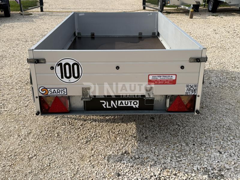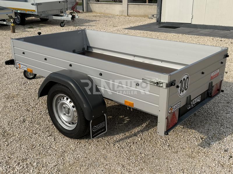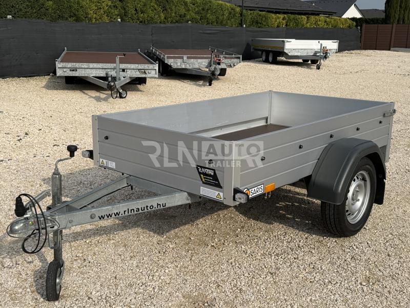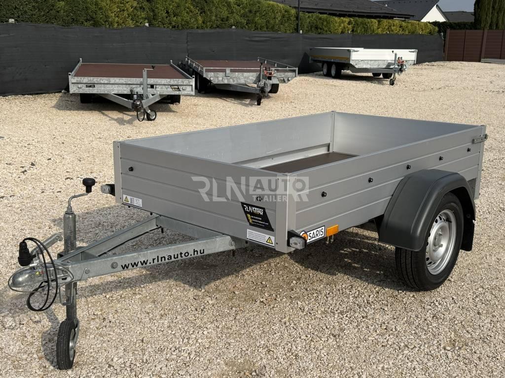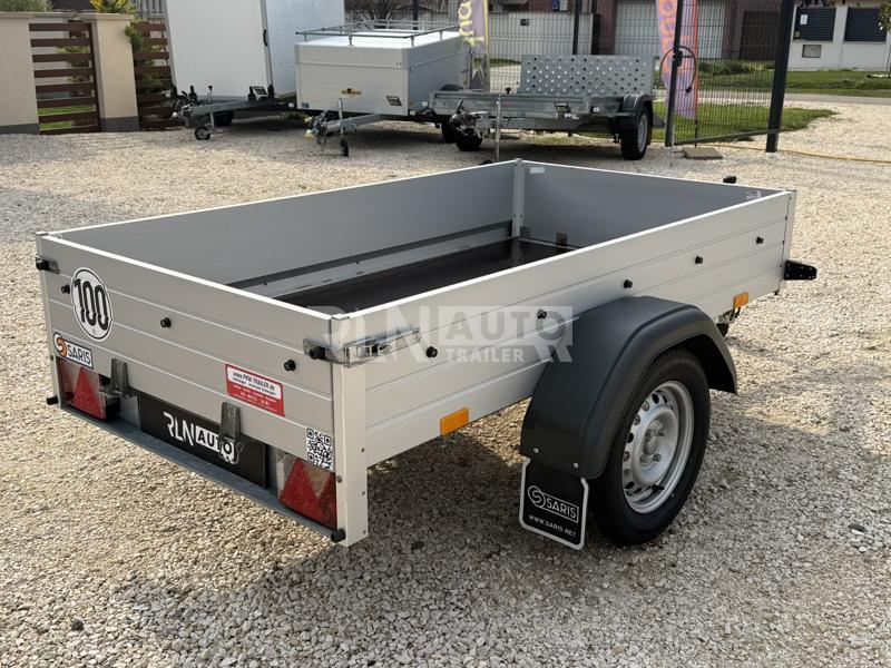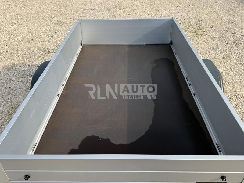 Sík platós, fék nélküli, 33 cm-s alumínium oldalfalú lenyíló hátsó ajtóval, szitanyomott fa csúszásmentes rétegelt lemezzel borított prémium minőségű utánfutó.